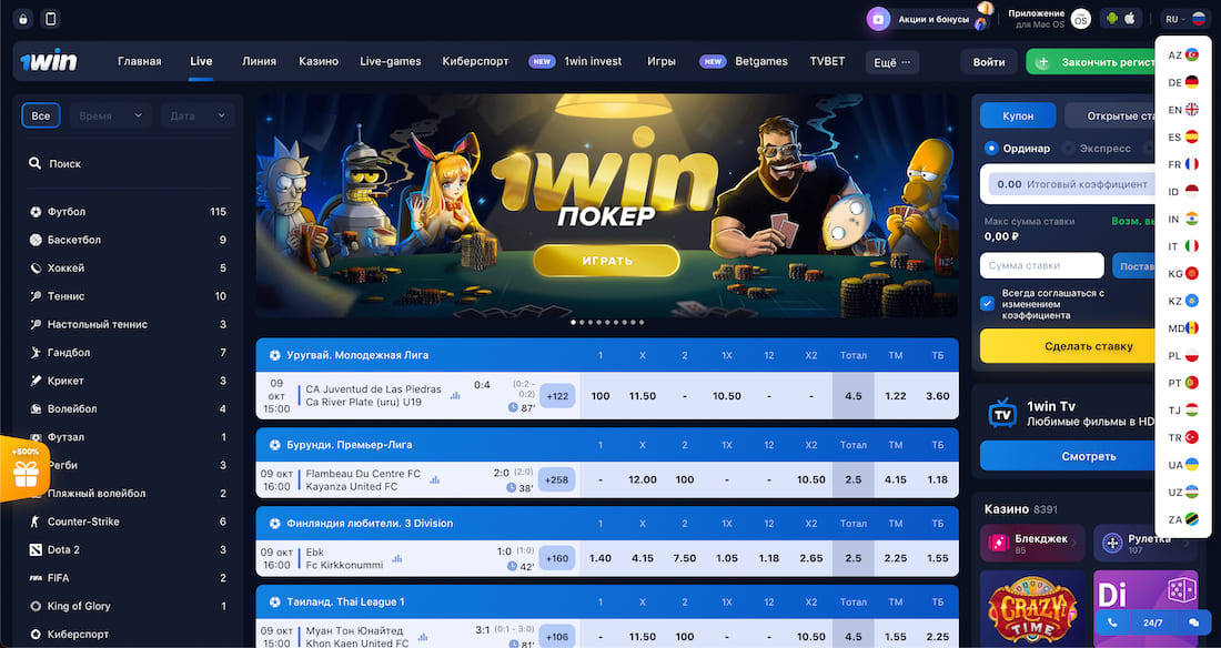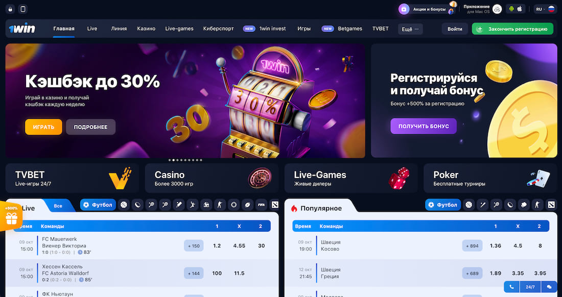 Онлайн casino 1вин имеет удобный интуитивно-понятный интерфейс, который состоит из основных пунктов меню: