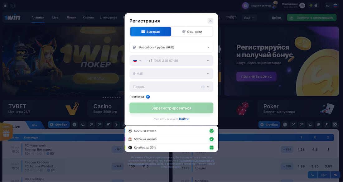 После регистрации игрок автоматически перенаправляется в личный кабинет, где он может воспользоваться бонусом за регистрацию. Важно: регистрироваться в 1Win можно только один раз. Повторная регистрация приведет к блокировке аккаунта.